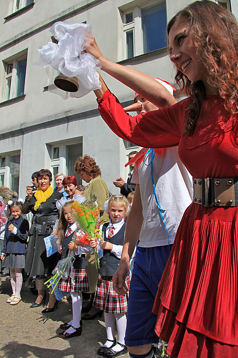 Букет доверили нести Кристине, плотной, серьёзной и неулыбчивой девочке. Букет один на всех, для своей учительницы. Из актового зала одиннадцать первоклашек выходят строем, взявшись за руки, и на улице растворяются среди таких же нарядных галдящих школяров со всего Иркутска-II. Обычные дети. Директор Валентина Анищенко замечает: