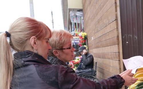 На остановке «Дом Кузнеца» ёжится на пронизывающем ветру одинокая торговка носками и стельками. Но её оставляют в покое, объясняя, что она – единственная здесь продавщица, работающая со всеми документами, по договору с магазином.