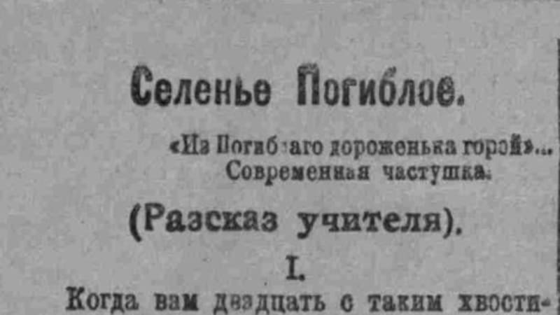 Но теперь стало интересно, а что же ещё писал Титов в 1918-1919 годах в «Наше дело»? Я начала листать архив повторно, теперь сосредоточившись на фамилии Титов. Оказалось, он печатался и под полной фамилией. Весной 1919 года в «Нашем деле» был опубликован большой рассказ «Старик Назар». Потом был перерыв, Титов по-видимому, освещал работу съезда учителей. А осенью 1919 года этнограф, покончив со школьными и экспедиционными делами, активно занялся и иркутским литературным миром. В годовщину смерти Дмитрия Олерона по просьбе Елпидифора Титова «Наше дело» напечатало два стихотворения покойного. В следующем номере Титов разместил текст о судьбе Дмитрия Глушкова и подписался полной фамилией, так что в этом случае сомнений в авторстве не было. И в это же время под его полной фамилией выходит в двух номерах «Нашего дела» рассказ «Сухостой». Однако оставались ещё газеты за 1918 год. И вот в ноябрьском номере за 1918 год я увидела рассказ «Селенье Погиблое», подпись была смазана, однако по контексту стало понятно: пишет очень молодой сельский учитель, которому «двадцать с хвостиком» лет, приехавший в село поднимать школу. Не осталось сомнений, что смазанная подпись под текстом – «Е.Т.». Писал Елпидифор Титов.
