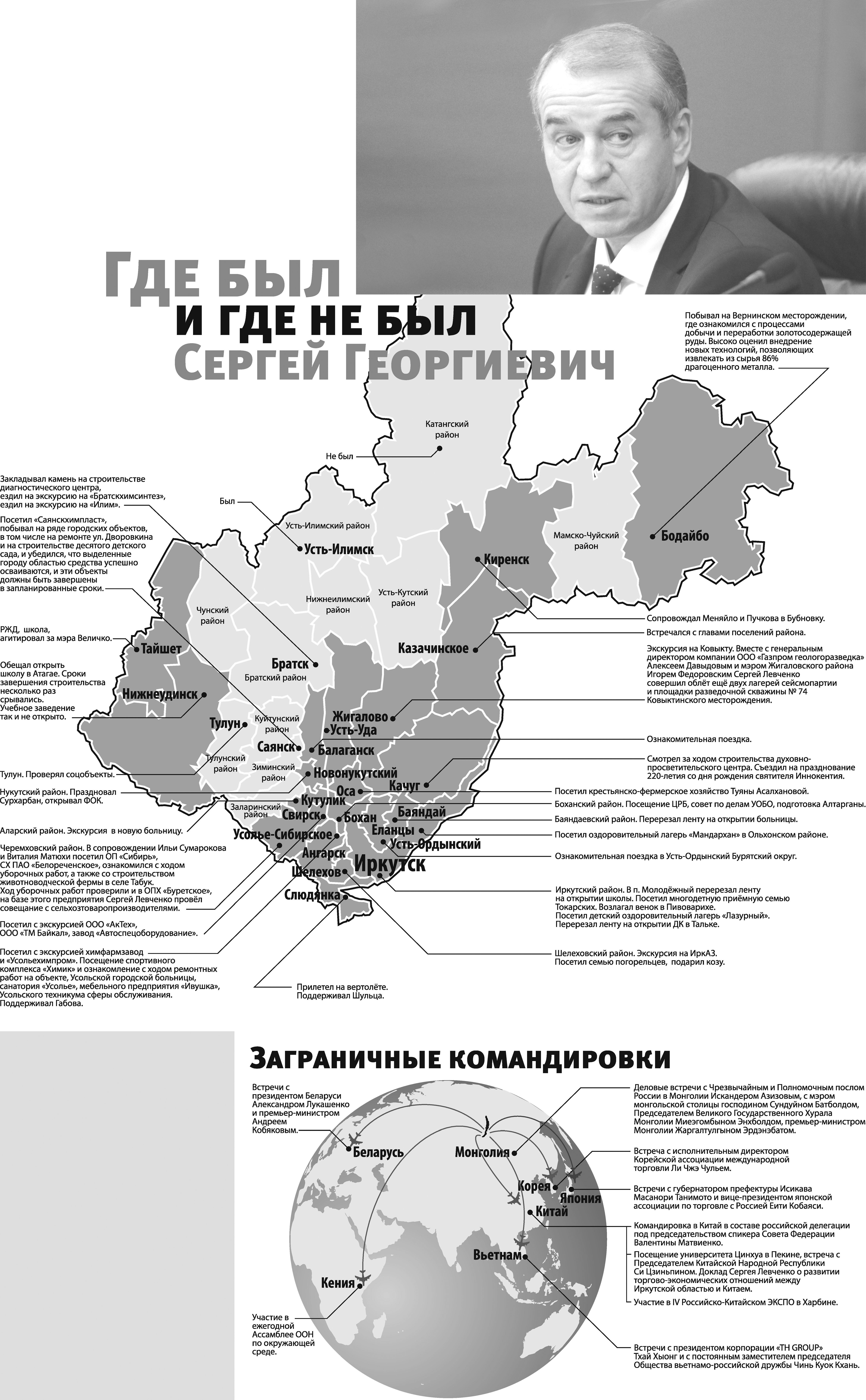 Сергей Левченко гостил на нескольких предприятиях Братска, но не увидел Братский район. Даже главу скандально известной Вихоревки отправил в отставку дистанционно. Усть-Кутский, Нижне-Илимский, Куйтунский, Зиминский, Заларинский районы ещё ждут визита первого лица.