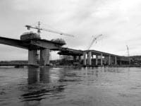 Пять лет минуло с того августовского дня, когда в центре Иркутска было начато строительство мостового перехода через Ангару. Это будет грандиозное с шестиполосным красавцем-мостом длиной в 1615 метров сооружение общей протяженностью 3750 метров, а его роль для автомобильных потоков трудно переоценить. С начала строительства на его сооружении освоено 2 млрд. 843 млн. рублей, из которых непосредственно на мосту -- 2 млрд. 515 млн. рублей. В конструкции моста из проектных 101,7 уложено 72,7 тыс.куб.м монолитного железобетона, в том числе 6,2 тысячи кубометров -- в нынешнем году.