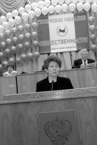 Губернское собрание общественности подвело итоги 2004 года Туда-сюда сновали розовощекие школьники в русских народных одеждах, старушки в спортивных костюмах весело демонстрировали тонкости аэробики, молодые девушки прогуливались в нарядах "а-ля мусорный дизайн", в воздухе стоял аромат живых цветов. Необычная праздничность окутала здание администрации Иркутской области в минувшую пятницу. В этот день здесь торжественно подвели итоги четвертого конкурса общественно значимых проектов "Губернское собрание общественности Иркутской области".