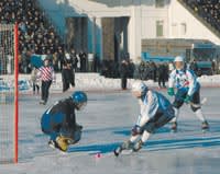 Хоккей с мячом. Чемпионат России. Высшая лига. Восточная группа. "Байкал-Энергия" (Иркутск) -- "Сибсельмаш" (Новосибирск) -- 4:2 (2:1). Голы: Ерахтин (8), Насонов (30, 88), Юсупов (76); Вангонин (17), Свиридов (78).