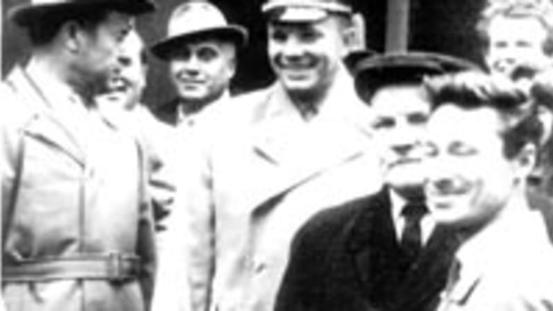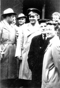 Ю.А. Гагарин и А.Е. Бочкин на строительстве Красноярской ГЭС.