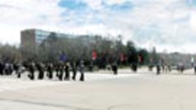 Митинг закончен. Торжественно и победно льются над
