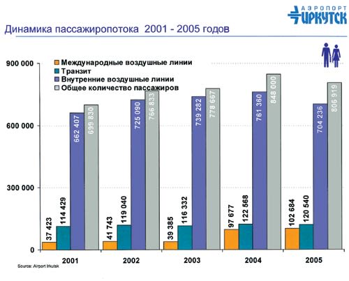 Прикинем хотя бы вкратце, за счёт чего достигнут успех. Мы увидим по цифрам таблицы, что самый значительный рост достигнут за счёт международных пассажиропотоков, хотя в несколько раз возросли и внутренние. Если в 2001 году международные перевозки составляли 37 с небольшим тысяч человек, то сегодня — свыше 102600! Рост наблюдается и на внутренних и на международных грузоперевозках. Даже несмотря на рост цен на топливо, аэропорт отработал год с прибылью; общие же показатели роста, добавим к этому, за 4 года позволили ему рассчитаться со всеми долгами и значительные средства направить на развитие.