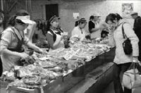 Дальше Центральный рынок. Зашли, посетили мясные ряды, молочные… «Дороговато городское мясо, — комментирует глава Эхирит-Булагатского района Пётр Нохоев. — Может быть и дешевле». Наверное, закономерно. Сегодня аренда мясного места в день обходится в 800 рублей. В месяц получается 24 тысячи рублей. А если учитывать, что торгуют здесь в основном перекупщики (из 70 мясных мест 10 за Усть-Ордой), то становится понятным, откуда такая цена. В ближайшее время ситуация на рынке должна поменяться, устьордынцам обещали выделить дополнительные торговые места. Но даже не это главное. В округе будет создана структура вроде прежней райпотребкооперации. Она призвана выступить единственным посредником между крестьянами и покупателями и тем самым устранить многоуровневую систему перекупщиков. «Выстраивается ровная нормальная система, которая даст возможность, с одной стороны, снизить цены на продукты для иркутских покупателей, с другой — увеличить доходы селян, которые будут поставлять эту продукцию на иркутский рынок», — комментирует Владимир Якубовский. «Потенциал у устьордынцев есть. Люди настроены работать, развивать производство молока и мяса, главное — их поддержать», — говорит Пётр Нохоев.