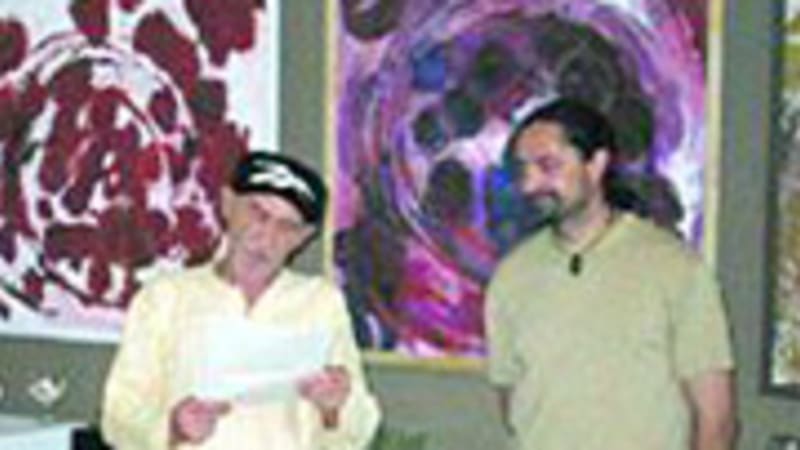 НА СНИМКЕ: Алексея Третьякова поздравляет писатель Виталий Диксон