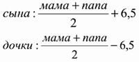 Чтобы определить рост ребёнка, когда он станет взрослым, надо сложить рост матери и рост отца, полученную сумму разделить на 2, а затем прибавить 6,5 см для мальчика или столько же отнять, если речь идёт о девочке.