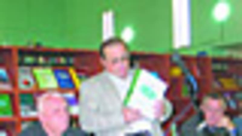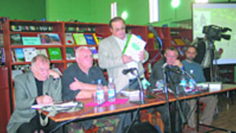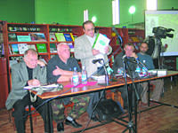 НА СНИМКЕ: участники встречи в областной библиотеке (слева направо) С. Куняев, Б. Дмитриев, Г. Сапронов, В. Распутин, С. Элоян