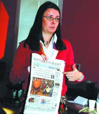 С первого взгляда было видно, что новости по-шведски сильно отличаются от новостей по-русски. Занятия начались с беглого просмотра шведских газет. Газеты в Швеции читают, тираж ежедневной газеты в 100 тысяч экземпляров для шведов — скорее норма, чем исключение. Конечно, много рекламы и обилие снимков. Фотография в половину полосы, при которой болтается небольшой материал, размером со спичечный коробок, — это нормально, считается, что читатель хочет видеть героев публикаций. На фото скрупулёзно выдержано гендерное равенство — количество мужчин и женщин на иллюстрациях примерно одинаково.