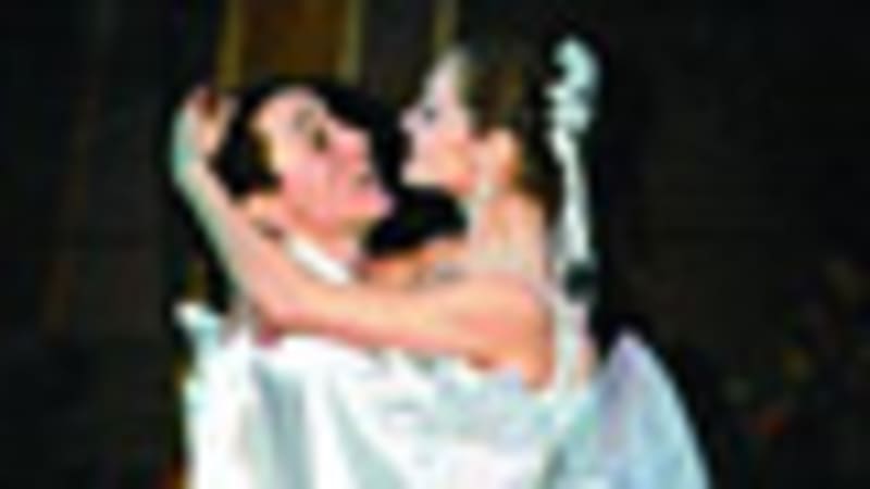 На снимке: сцена из балета (Эсмеральда — Мария Стрельченко, Феб — Сергей Полухин)