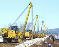 На снимках: трубопровод через Лену;