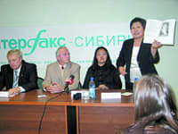НА СНИМКЕ: момент пресс-конференции. Выступает Галина Рыбина-Дрюон. Второй слева — её супруг