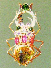 Другое дело — ювелирные изделия. Многие авторы достигли в этом искусстве впечатляющих результатов. Они составляют композиции подвесок, колье, серёг, браслетов, колец с необыкновенной фантазией. Некоторые подвески представлялись на шее Нефертити — женщины, ставшей эталоном красоты для всех времён. Они отражают в себе не только мерцающий блеск камней, но и загадку природы, создавшей их. Камни даже не обработаны мастерами, а только чуть подправлены.