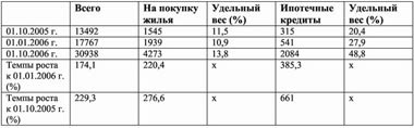 Бум кредитования пришёлся на покупку жилья (за 9 месяцев — в 2,2 раза, а по сравнению с аналогичным периодом прошлого года — в 2,8 раза соответственно). На долю этого вида кредитования пришлось 4273 млн. рублей. А непосредственно по ипотечным кредитам, основным условием которых является залог недвижимости, эти показатели выросли в 6,6 раза — с 315 млн. рублей до 2084 млн.