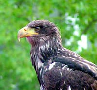 С километр от моей обители в долину сбегает тонкий мыс, на конце его заметная лиственница, я хорошо её знаю. И вот сегодня издалека вижу: стоит эта лиственница «не такая». На её вершине чернеет силуэт огромной, в сравнении с обычными тут воронами, птицы. Сообразив, что меня она пока не заметила, я укрылся за деревом, достал бинокль и приготовился понаблюдать. Но в этот момент орёл — конечно, это был он — мягко снялся и спланировал куда-то в заросли ерника. Я понял, что он занялся обедом, и спустя некоторое время, дав ему подкрепиться, пошёл посмотреть, кого убили браконьеры. Орёл слетел с кучи лосиных потрохов. Зверя этого браконьеры завалили из дальнобойной винтовки, осветив мощной фарой далеко на пологом склоне, и волоком, с кровавым следом, притащили к машине. Этот след орёл мог заметить издали.