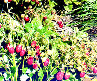 И не только. А ещё неприхотливый, урожайный, зимостойкий гибрид между земляникой и клубникой, выведенный совсем недавно отечественными селекционерами. В моей коллекции он ещё новосёл. Получив пару саженцев из подмосковного питомника глубокой осенью 2004 года, не рискнула высадить их в зиму и продержала на подоконнике до весны. Постепенно окрепнув после долгого путешествия, они довольно быстро оправились и даже попытались зацвести. Но пришлось притормозить вневременное развитие, удалив цветоносы. Зато, высаженные в грунт весной после заморозков, растения, преодолев неадекватные условия произрастания, быстро окрепли и уже к осени всё-таки успели выбросить по одному цветоносу и несколько розеток. Так называемый «урожай» был весьма скуден, но качество ягод предопределило судьбу сорта.