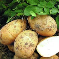 Участок под картошку у меня небольшой, около одной сотки, земля суглинистая. И при малых усилиях урожай всегда стабильный. Не был исключением и прошлый год — собрали около 400-500 кг. Этого вполне достаточно для нашей семьи. Агротехника предельно проста, мы даже землю никогда не перекапываем. Рано весной, обычно до 9 мая, размечаем участок на ряды с расстоянием в 1 м и с помощью тяпки вровень с землёй раскладываем пророщенные клубни через 20-25 см. Затем накрываем их перегноем (1 ведро на 7-8 лунок). Через пару недель, как только проклюнутся первые ростки, высоко и широко загребаем посадки землёй из междурядий таким образом, чтобы создать комфортные условия для формирования гнезда. Заодно решаем и судьбу сорняков, которые к этому времени успели себя обозначить.