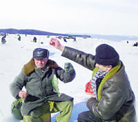 В прошедшее воскресенье Мухорский залив превратился в своеобразную Мекку. 49 команд, сотни любителей подлёдного лова съехались со всех концов области на теперь уже ставшие традиционными соревнования по подлёдному лову, проходящие в рамках Международного фестиваля зимних игр на Байкале «Зимниада-2007».