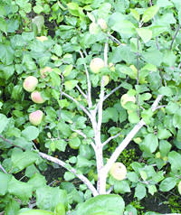 Кору от лишайников надо очищать. Ветки крыжовника можно просто протереть грубой тканью, сняв налёт до здоровой коры. Стволы и ветви деревьев очищают деревянными скребками или тыльной стороной садового ножа. На молодых деревьях лишайники хорошо очищаются «мочалками» из синтетической мешковины или сетки. После очистки кору надо продезинфицировать 1-процентным раствором медного или 3-процентным железного купороса. Можно просто протереть эти места листьями щавеля. Щавелевая кислота тоже хорошее средство для дезинфекции.