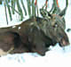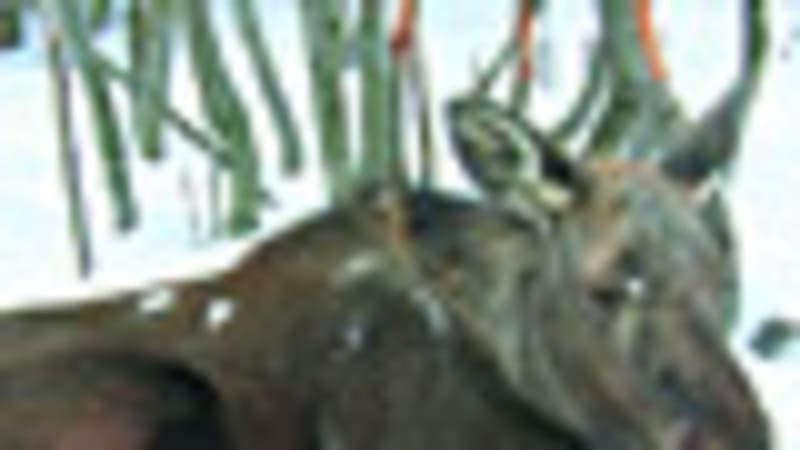 У одного из этих лосей я заподозрил наличие рогов, хотя они давно должны быть сброшены. То на лёжке чем-то в сторонке снег чиркнет, то сломать вон тот сучок без рогов никак нельзя, высоко. Изловчился, подобрался «на цыпочках» поближе и в бинокль чётко увидел: из двух положенных рогов остался у него только один. Значит, второй уже отпал, не сегодня-завтра отвалится и этот. Попробовал поискать в снегу на его следах вчерашних рог первый, но лось где-то затоптал его. Зато второй до сих пор в моей коллекции, он упал почти что на моих глазах аж 19 марта. В это время снег стал мягким, в полдень — мокрым. И я стал находить на следах лосей остренькие ледяные обломочки. Стал в тупик: что это? Но обломочки сильно походили по форме на копыта, и явилась догадка: это спрессованный тяжестью зверя мокрый снег; как только под копытом его накопится много, он отваливается.