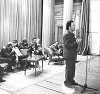 И ещё несколько строк о профессоре Азадовском: «Мне, студенту первых военных лет, довелось слушать глубокие и раздумчивые лекции Марка Константиновича, которые произносил он высоким хрипловатым голосом. Ему было уже за пятьдесят, но он порой и сам напоминал студента. То он приглашал на занятия кого-нибудь из жителей приленских деревень, случайно оказавшихся по личной нужде в Иркутске, то из Бохана привозил бурятского поэта Аполлона Тороева, который, обводя аудиторию невидящими глазами в тёмных очках, протяжно пел нам улигеры о борьбе советских сибиряков-воинов с фашистами, то он поручал какую-либо тему из своего курса русской литературы кому-либо из студентов, а сам садился на скамью и был весь внимание».