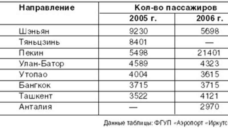 Предположения эксперта подтверждают данные иркутского аэропорта. В прошлом году клиентами международных рейсов стали более 45 тыс. человек, что на 15% больше, чем за весь 2005 год. Впрочем, данные аэропорта нельзя считать конечными, потому что часть туристов предпочитает путешествовать через Москву. Как утверждают профессиональные участники рынка, просчитать таких путешественников «практически невозможно».