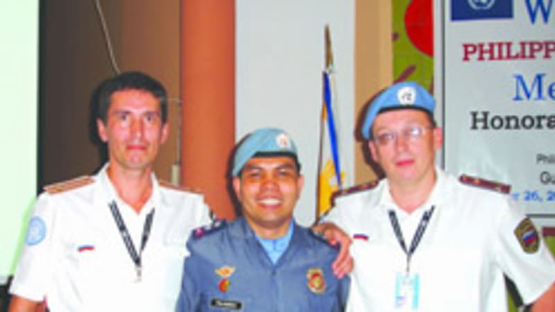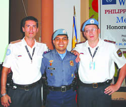 НА СНИМКЕ: Андрей Шкабров, полицейский из Филиппин и Дмитрий Снарский (слева направо)