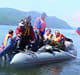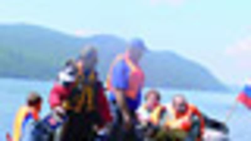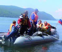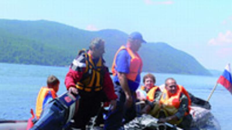 На берегу Байкала пятеро участников команды: Иван Кунпан, Владимир Бакуркин, Анатолий Коробкин, Андрей Следков и Татьяна Семенюк – подготовились к отплытию. На предприятии это опытные работники производства ПВХ (некоторые из них трудятся на заводе с момента получения первой тонны смолы – с ноября 1982 года), а в свободное время – заядлые туристы. На их счету сплав по многим сибирским рекам: Оке, Енисею, горным потокам Хамар-Дабана и Саян. «Сплав по крутым горным порогам гораздо опаснее, чем путешествие по Байкалу», — уверенно заявляет Владимир Бакуркин. Самому старшему участнику плавания – 59 лет, а самому младшему – сыну Ивана Кунпана Ване – недавно исполнилось десять. Мальчик увлечённо помогает надуть лодку и постелить в ней пол.