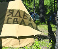 Активность противников создания Международного центра по обогащению урана (МЦОУ) на базе Ангарского электролизного химического комбината (АЭХК) перешла в новую стадию. Раньше они довольствовались проведением пикетов и митингов, на этой неделе выставили под Ангарском экологический лагерь, куда съехались радикальные экологи, либеральные коммунисты и несколько «неопределившихся». Несмотря на то, что в лагере царит абсолютная анархия, потому что часть обитателей относит себя к анархистам, запланированные мероприятия – распространение листовок и пикеты — пока идут по плану. 26 июля в Ангарске откроется ещё один лагерь, организаторы которого пока занимаются выбором места дислокации и набором активистов. С жителями первого экологического лагеря познакомилась наш корреспондент ЕЛЕНА ЛИСОВСКАЯ.