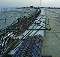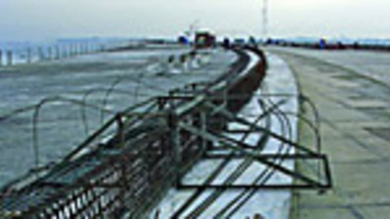 Параллельно продолжаются работы и по низовому направлению моста. На сегодняшний день забетонировано восемь захваток «птички» на опоре N12, смонтирован первый агрегат для навесного бетонирования первой захватки на опоре N11. «До конца 2007 года нам предстоит закончить на этих опорах «птички» на 100%, в октябре приступить к работам по навесному бетонированию последней на иркутском мосту «птички» на опоре N10, — сказал главный инженер генподрядного МО-125 Виктор Ляшенко. — Полностью работы по бетонированию пролётных строений будут завершены до 15 мая 2008 года».