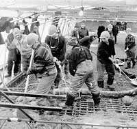 Около сотни человек почти сутки несли свою вахту. Безотказно, словно один механизм, действовали водители миксеров, экипажи бетононасосов и коллектив завода ЖБИ, обеспечивший строителей материалом.