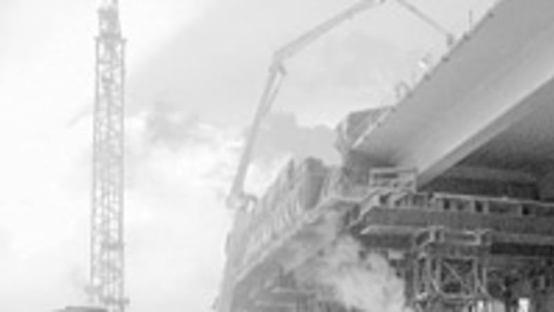 Это наиболее ответственная операция, определяющая уникальность технологии строительства. Используется она при сооружении мостов с пролётами большой длины. В то же время монолитных железобетонных конструкций с пролётными строениями 105 метров в России ещё никто не возводил. Отсюда и столь тщательная подготовка, скрупулёзное изучение агрегатов навесного бетонирования, специально изготовленных для нас швейцарской фирмой «VSL».