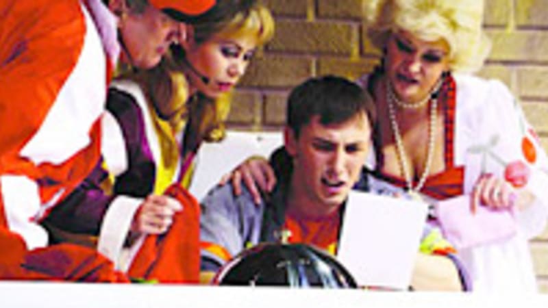 Привидения прыгают со сцены в зал и набрасываются на зрителей…