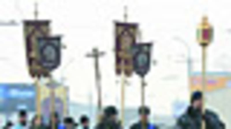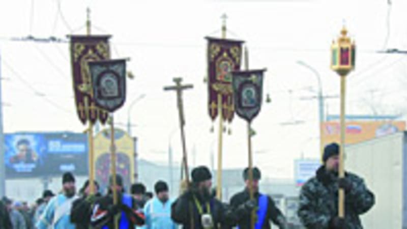 Крестный ход выстроился в километровую колонну по три человека. Губернатор и мэр под-хватили носилки с иконой Божьей Матери, и все отправились к Иркутску. Кто-то в голове колонны махнул рукой, и ход запел Иисусову молитву. По морозцу идти хотелось быстрее. Отставали две бабушки, обе с тросточками. «Мы в автобус не пойдём. Мы и так сюда еле добрались!» — старушки отметали все попытки усадить их в транспорт.