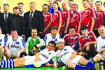 В подобных товарищеских встречах всё-таки не бывает проигравших. Памятные медали получили футболисты обеих команд. А Александр Гимельштейн вручил кубок капитану победителей Альберту Батутису.
