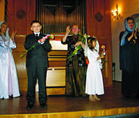 Аплодисменты восхищённых зрителей заслужил и самый юный участник рождественского вечера, пятиклассник 23-й иркутской школы Валя Илюхин, который декламировал стихи, послужившие необычным, лирично-возвышенным обрамлением праздничного концерта.