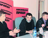 На снимке автора: участники пресс-конференции Г. Гущин, В. Кокорин и О. Каньков
