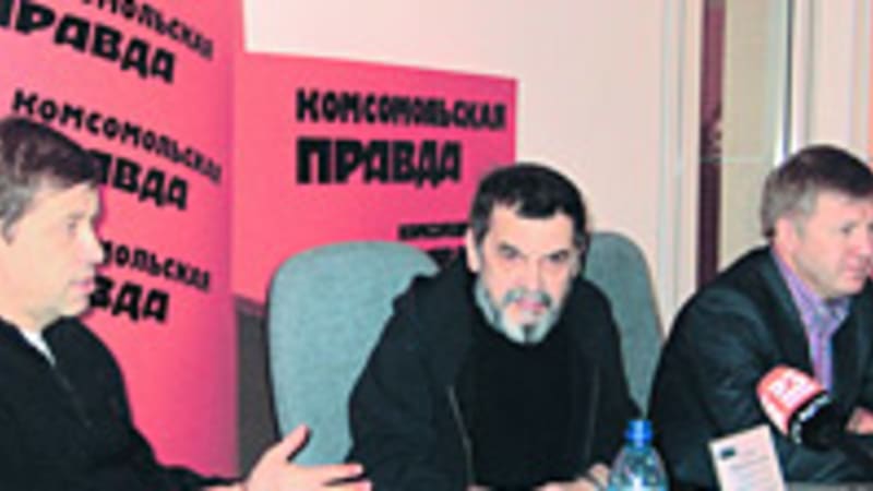 На снимке автора: участники пресс-конференции Г. Гущин, В. Кокорин и О. Каньков