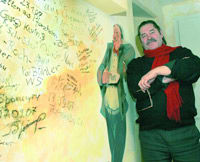 Так что «Берлинский погребок» в Иркутске возник не на пустом месте. Хотя этот проект отнял у меня много времени, особенно поначалу. Во-первых, хотелось, чтобы была настоящая немецкая кухня. Поваров пришлось самому воспитывать в немецком духе, учил их варить свиные рульки в пиве, делать берлинскую солянку и т. д. В Иркутске четыре ресторана с немецкой кухней. Наши блюда им уступают разве что в цене: Студгородок — это ведь не центр, кошельки у наших клиентов не самые толстые. Здесь уютно, стены я расписал так, будто сидишь в кафе на Унтер ден Линден в Берлине. И сделал это специально так, чтобы скучно не было. Гости сидят, обсуждают, что правильно нарисовано, что неправильно. Главное — не остаются равнодушными. Тихая немецкая музыка 20-30-х годов. Мест в погребке, правда, мало — всего 35. Мы из-за этого стараемся не афишировать встречи, которые здесь проводим, творческие вечера. По сути, это камерный, салонный клуб. У нас выступают барды, поэты, писатели, композиторы, издатели.