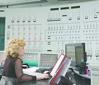 Ещё один крупный проект по замене центрального пульта управления завершился в 2007 году. К «мозгу» ГЭС мы идём через следующий уровень машинного зала, ниже прежнего ещё на шесть метров. Здесь находятся мастерские и душевые, на выходе – теннисные столы, за которыми в обеденный перерыв играют сотрудники. Перед дверью, ведущей к центральному пульту, рядом с кодовым замком висит список допущенных. Пульт представляет собой массивный стенд с датчиками, приборами, ключами, индикаторами и лампочками. Он установлен на месте бывшего «аквариума» для посетителей. Стоимость нового оборудования составила 27 млн. рублей.