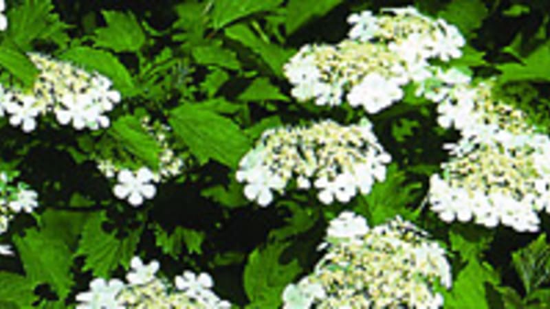 Калина обыкновенная – это кустарник высотой 2,5 – 3 м. Цветки собраны в зонтиковидный щиток, в центре которого находятся трубчатые мелкие цветки с одним пестиком и пятью тычинками. На периферии соцветия расположены более крупные старинные цветки с белыми лепестками. Они распускаются несколько раньше, чем центральные. Их назначение – привлекать насекомых-опылителей.