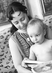 По телефону Юлия сразу предупредила: «Пугаться не надо, нас тут восемь человек, не считая кошки и собаки». Дом Галаниных на улице Миронова называется «Нора на Горе». Пекинес Лёва во время интервью тихонько, но отчётливо храпел. «Страшно умная» кошка Ведьма тут же завалилась спать на мой блокнот. Активное участие в беседе принимал младший сын Юлии – Никита. Недавно он побывал с мамой на «Евроконе» (европейская конференция фантастики, проводящаяся в разных странах Европы. – ред.). В оранжевой коляске и под девизом «Ето мы, толстые эльфы!». А во время интервью Никита был на хозяйстве. Поэтому наше чаепитие подзадержалось – мама искала ложки, которые хозяин сложил в трубу старого антикварного самовара 1947 года. А тем временем Никита полил кресло чаем, скормил Лёве сушки, вымазался шоколадом от ушей до пяток. И с возгласом «Низзя!» провёл операцию «Книгам место на полу». А потом, устав по хозяйству, залез под стол. «Вот там и живи», – посоветовала мама.