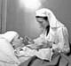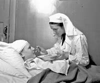 Дополняет Екатерина Ивановна Панченко, служившая прачкой в госпитале: «С начала 1942 года эшелоны стали приходить чаще. С ранеными запрещали общаться под угрозой увольнения. Их перевозили на санях, подводах. Мы их мыли, как маленьких, переодевали в чистое бельё и разносили по палатам. Домой не уходили. Раненых кормили одинаково, не различая солдат и офицеров. За разовую сдачу крови нам полагался обед как раненому – стакан сладкого чаю, котлета с картошкой, суп и хлеб. После сдачи крови сразу шли на работу — выходные не полагались…».