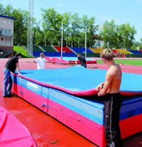 – Легкоатлетического оборудования приобретено на 3,5 млн. рублей, – говорит Эдуард Шпорин. – Стойки, планки, поролоновые маты для прыжков, копья, диски и ядра для женщин и мужчин… Всё импортное – французских, шведских, финских фирм.