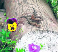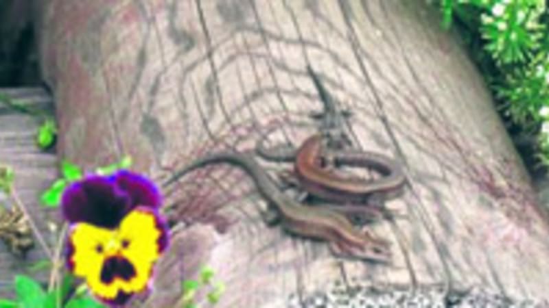 В августе, особенно перед дождём, уже на брёвнышках, на том же месте, лежит, причудливо свернувшись, семейка ящериц.