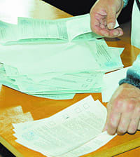 «Быстро берём свою штучку и уходим», – при нас гнал представитель милиции двух девушек с урной «Народного бюджета» от здания педуниверситета. После такого радушия активисты скорректировали свои лозунги. Мальчик на «Труде» заявил нам, что ни за кого не агитирует. Рядом проводили экзит-пул студенты, представлявшиеся работниками социологической службы «Вертикаль». «За кого больше голосуют?» – поинтересовались мы. «За «Единую Россию», – сказала девочка. И призналась, что получит за свою работу тысячу рублей от партии власти.