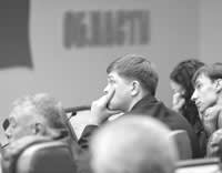 Перед заседанием всех выстроили в очередь, «проверили на фотогеничность» и лишь потом отправили в зал. Дебютантам показали, как далеко техника зашла. В Заксобрании, со слов руководителя аппарата ЗС Олега Власенко, установлена одна из лучших электронных парламентских систем в России. Всем новоиспечённым «ламерам» раздали инструкции пользователя. «Нам надо всё, как школьникам, показывать», – попросила начальник отдела экологии ОАО «РУСАЛ Братск» Светлана Дитрих. «Да ничего страшного в системе и нет», – улыбнулся Олег Власенко. Физического тела депутата на сессии уже мало. Каждому положен виртуальный образ. А он появляется «путём установки кодовой карточки» в щель-приёмник (именные карточки раздавали на входе). Депутатам понравилась эта забава с картами. Потому что остро чувствуется коллектив, когда твоя фамилия появляется на «групповом табло» слуг народа. Роман Незовибатько, сияя от счастья, регистрировался два раза. Электронный мир был к депутатам очень строг.