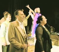 Казалось бы, только искушённым театралам мог быть внятен подобный калейдоскоп сюжетов и персонажей. Но, видно, не зря иркутский зритель слышит комплименты от всех гастролёров. Зал взрывался смехом, то и дело аплодировал. Такая реакция раскрепостила исполнителей, игравших свои роли после одной-единственной репетиции накануне праздника. Элементы капустника помогли обрести второе дыхание: что называется, поймали ветер в паруса! Артисты доставляли удовольствие аудитории и самим себе зажигательными танцами, пением, удачными пародиями, декламацией стихов, импровизационным партнёрством в драматически-комедийных отрывках, органично перетекающих друг в друга. Под возгласы «браво», «молодцы» они к финалу проникновенно исполнили романс «Утро туманное». Это был момент духовного единения, говоря высоким слогом.